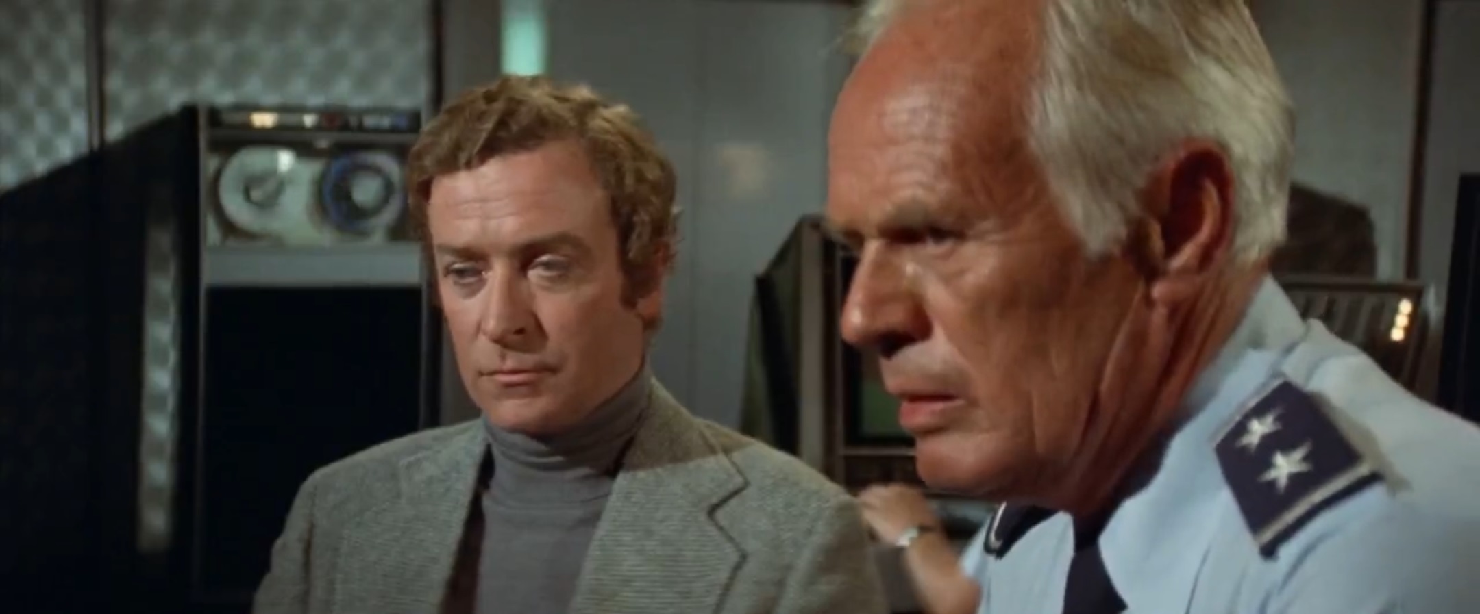 Gen. Slater: With Caine and Ross trying to out-robot each other, it falls to the supporting cast to carry the movie. Slater isn't particularly better-written than the two leads. This was the '70s, so a career military man in a movie was pretty much automatically an idiot. For two full hours, Slater's role is to be reliably wrong at every turn while also being paranoid about Dr. Crane - only to, in the final half hour, suddenly develop respect for Crane for no particular reason. Though the role isn't good, Richard Widmark pours full energy into it. He spits, sneers, and chews on every line, devouring his cheesy dialogue like it's particularly well-cooked prime rib. The results are more than a little hammy - but given the material, a bit of ham is called for, and at least Widmark is fun to watch.